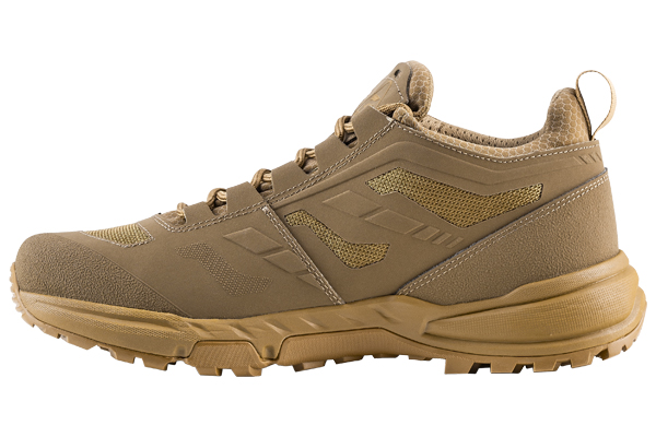 This lightweight, agile and versatile shoe offers exceptional comfort in both everyday activities and operations that require adaptability in changing conditions, from the hottest to the wettest. The materials used are lightweight and dry quickly, keeping the foot dry on every adventure. The low cut upper offers freedom of movement and protection during fast movements over rough terrain. The elastic gusseted tongue prevents debris from entering the shoe, keeping the tongue in place.